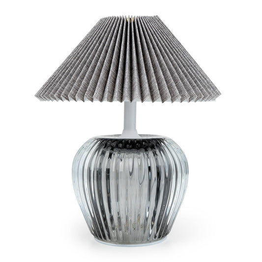 Ridged Glass LED Table Lamp with Pleated Shade - Smokey Black