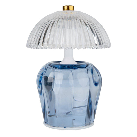 Ridged Glass LED Table Lamp with Pleated Shade - Smokey Black
