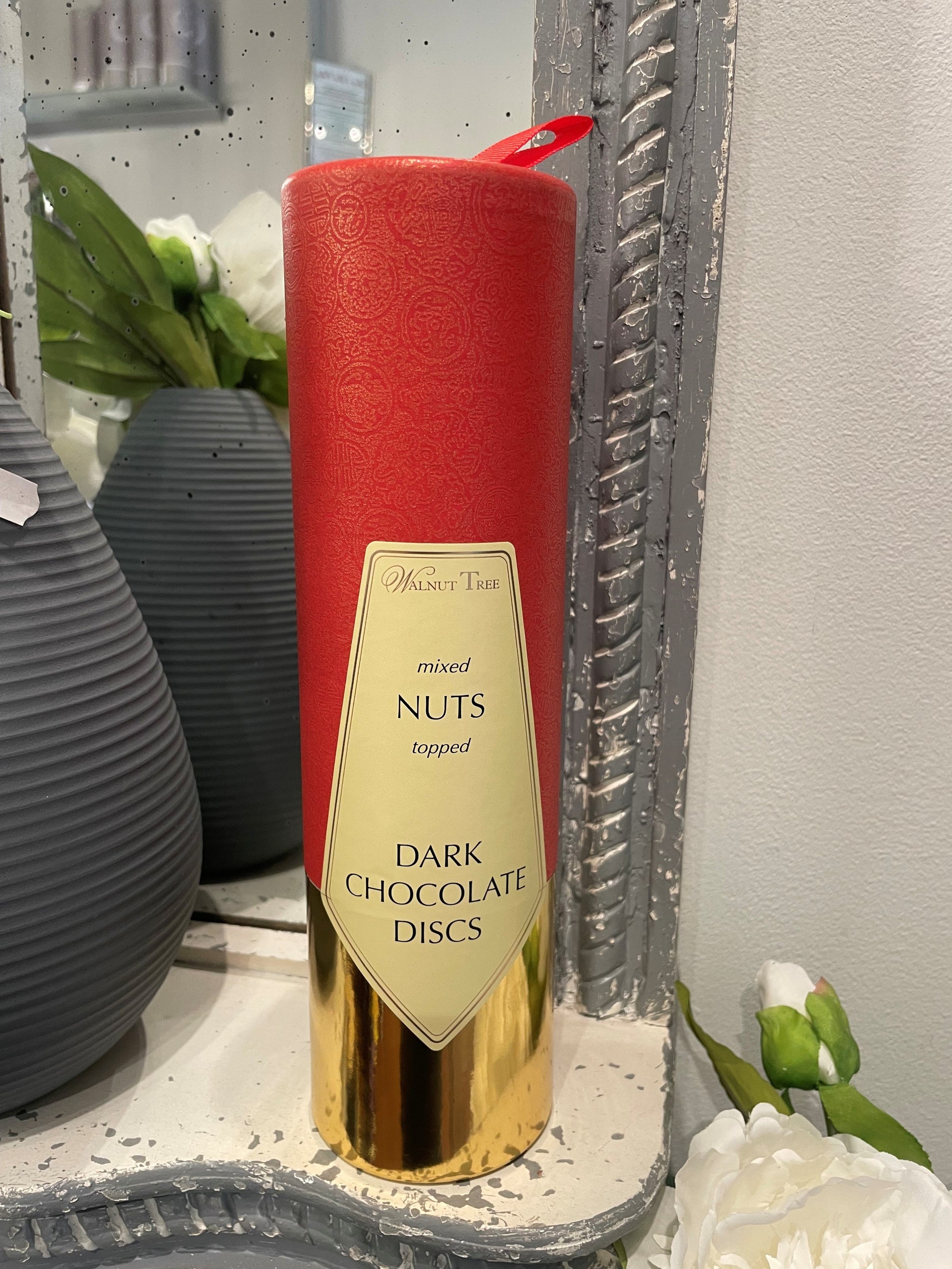 Walnut Tree Scroll, Dark Chocolate Discs with Nuts