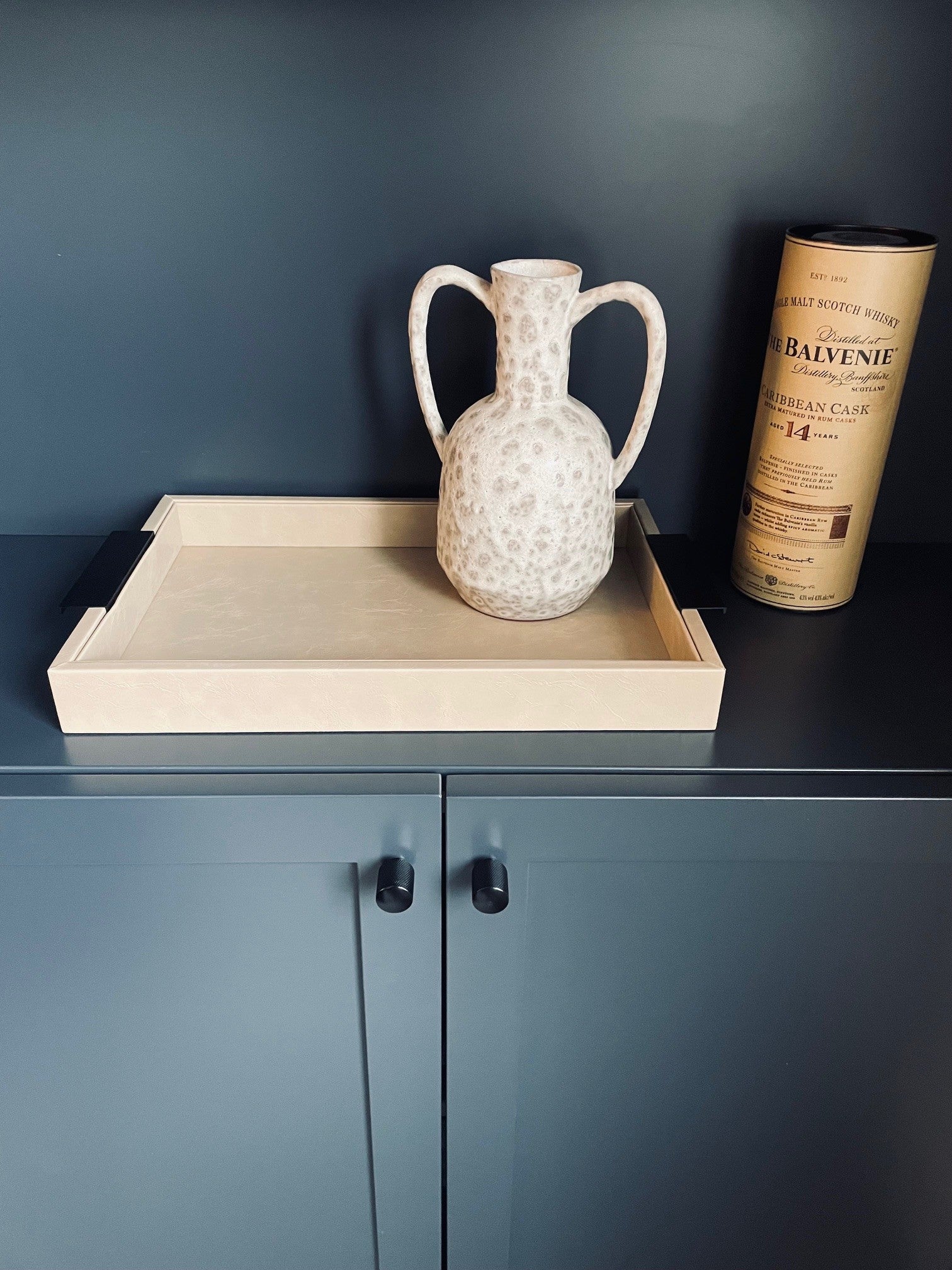 Faux Leather Taupe Tray with Black Handles