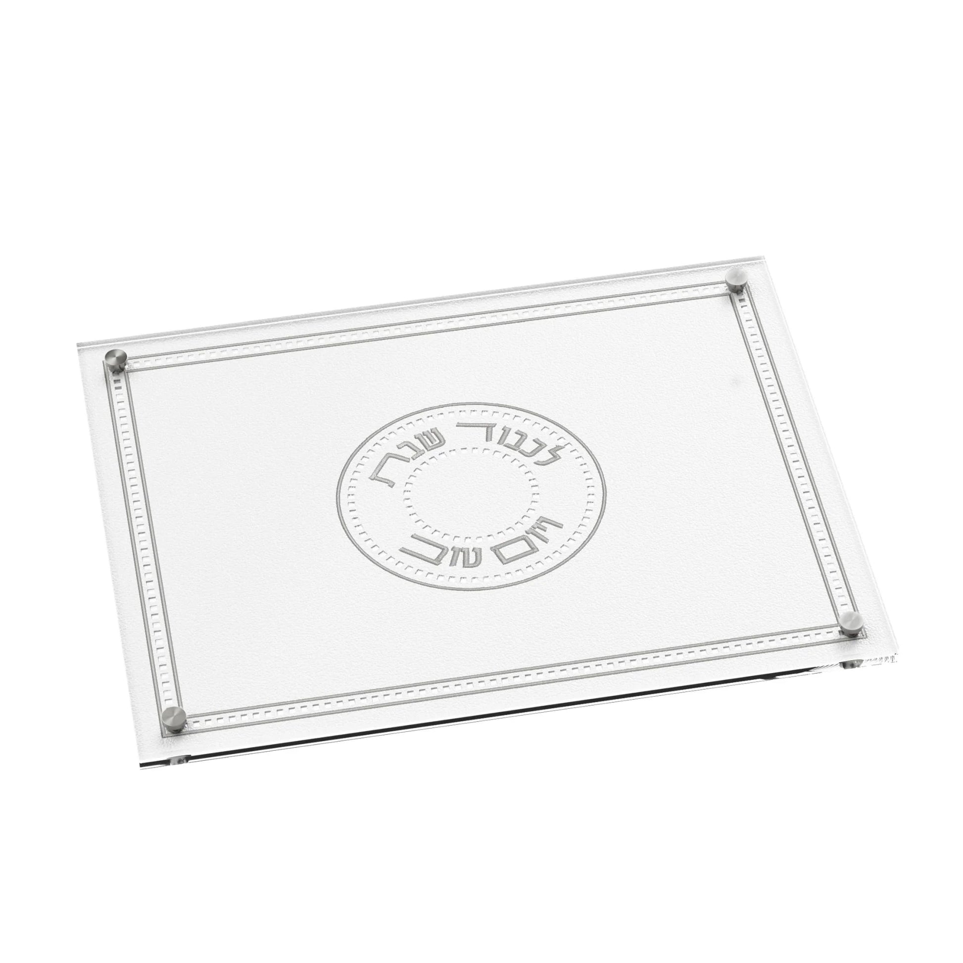 Indulge in luxury with the Leatherite Gilded Radiance Challah Board, exquisitely crafted with an embroidered leather design and topped with lucite and tempered glass. Available in gold and silver, this board is the height of luxury and elegance. Elevate your Shabbos and Yom Tov table with this stunning piece of functional art.