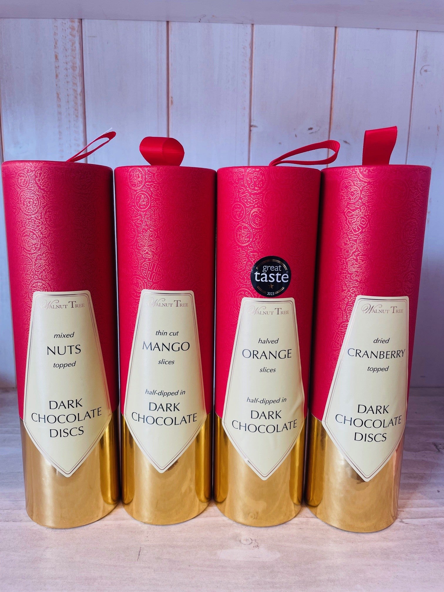 Walnut Tree Scroll, Mango Dipped in Dark Chocolate
